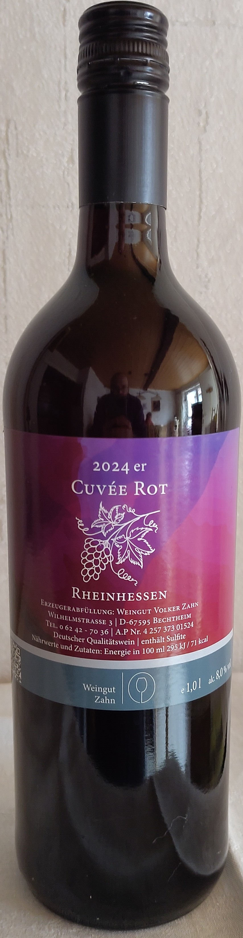 24-03 2024er Cuvee Rot Qualitätswein Säure: 5,5g/L Alkoholgehalt: 8,50% vol 5,40€ pro Liter Enthält Sulfite